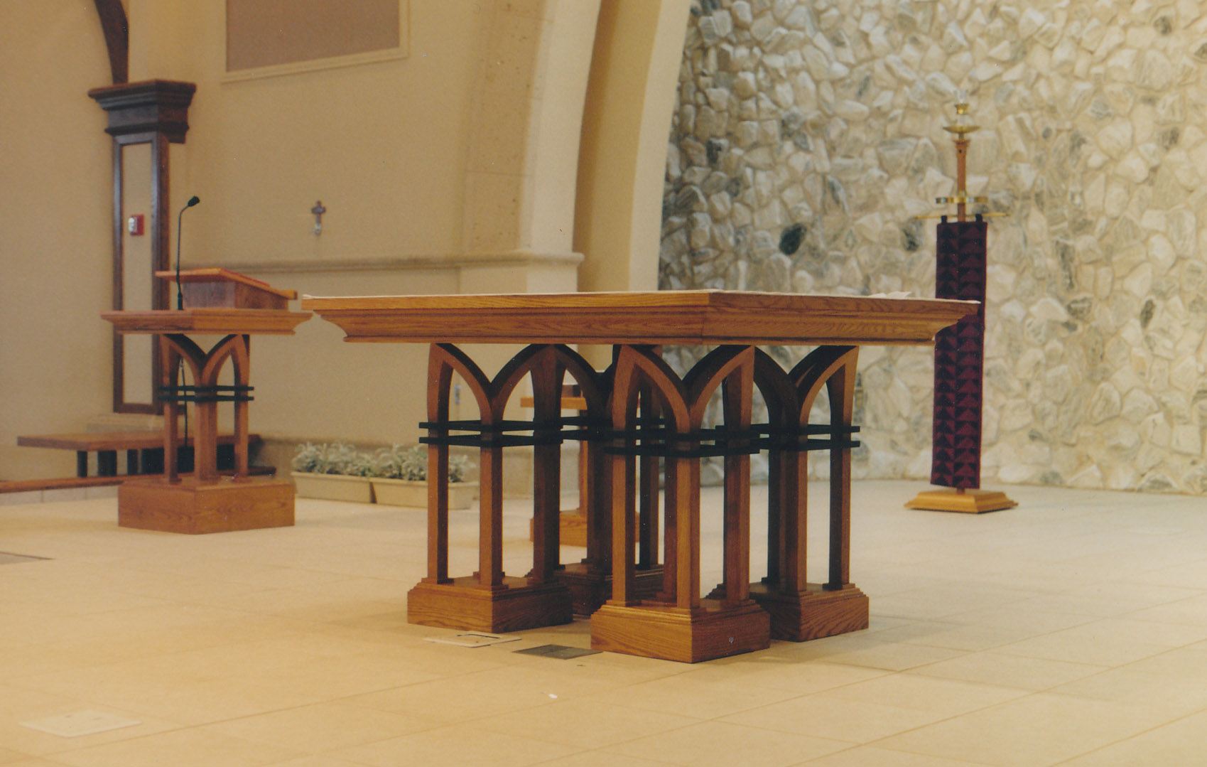 Existing architectural elements are considered when designing, with the intent to meld the furnishing together with the existing ambiance of the Worship Space. Each piece is designed and fabricated with its purpose in mind, adding to, but not distracting from, the worship experience.
